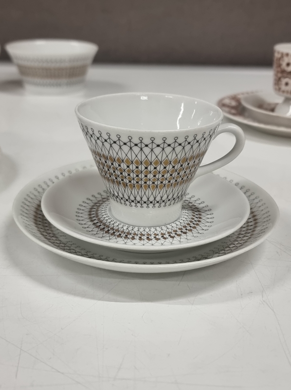 Kolmesta Ali - kupista pala pois, Kruunu - astioissa kulumaa. Isoimman halkaisija 22cm.