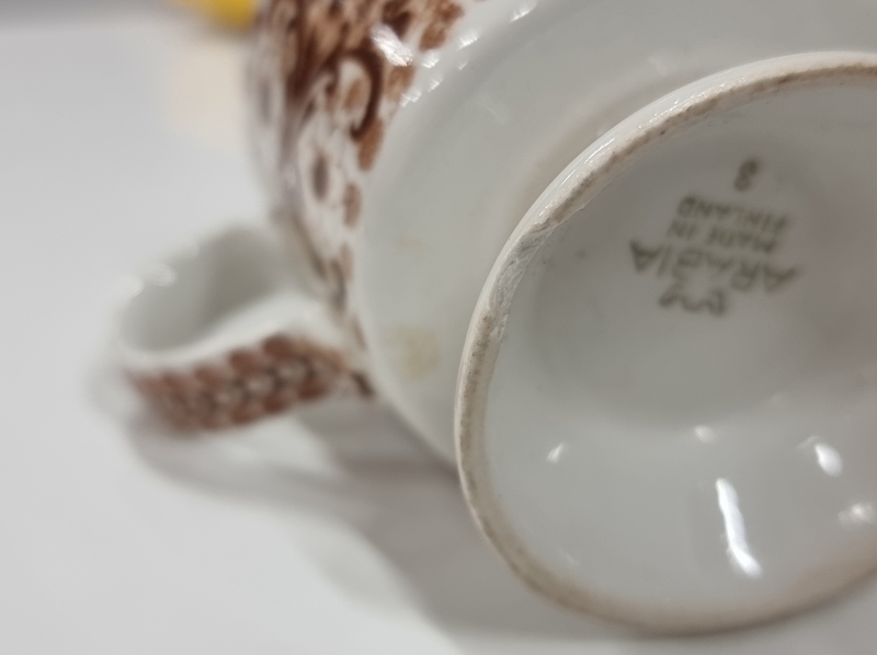 #671 Arabia astiastoja, mm. Ali + kristallimaljakko hopeajalalla