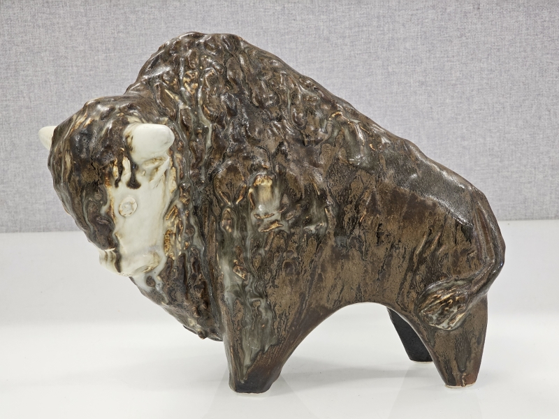 Biisonin päässä vähäistä krakeloitumaa. Pituus 30cm, korkeus 25cm