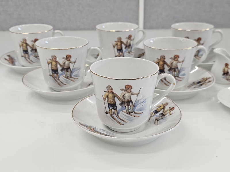 Hyväkuntoiset, kuvissa käyttökulumaa. Kupin h: 9cm