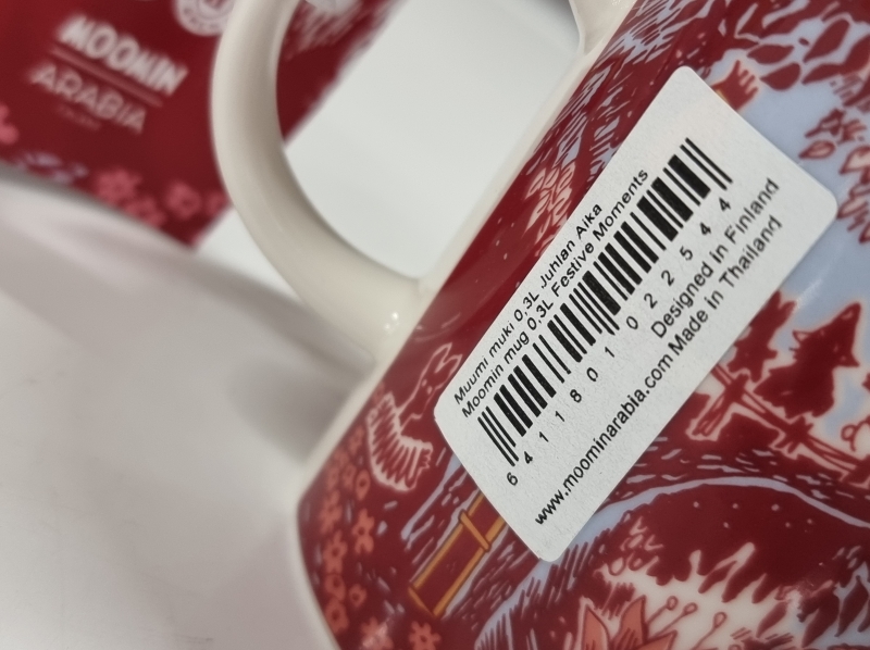 #734 - 4kpl Muumimukeja, yhdessä paketti mukana,"Muuminpäivä 2025" ja "Sydänystävät"