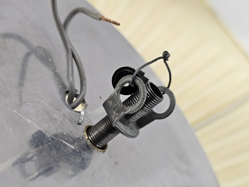 Halkaisija n. 70,5cm. Kattokiinnike puutteellinen mutta toimiva