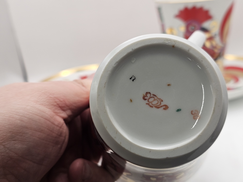 #760 - 2kpl Lomonosov Red Rooster -kuppeja ja tasseja