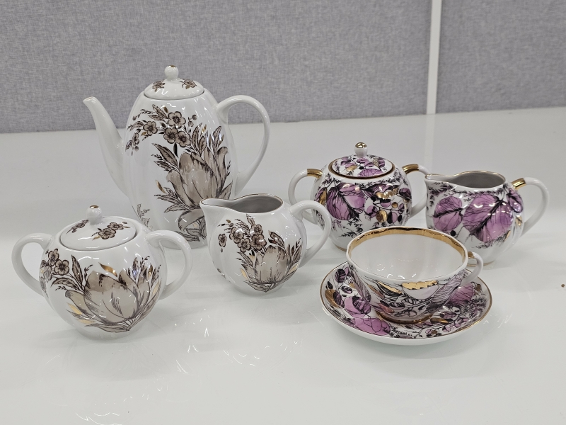 Punaiset sokerikon kansi liimattu, tassissa väreissä kulumaa. Korkein 19,5cm