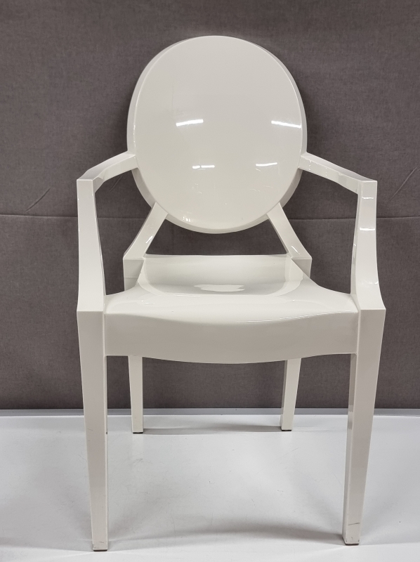 #929 - 4kpl Kartell Louis Ghost, valkoisia pinottavia käsinojatuoleja
