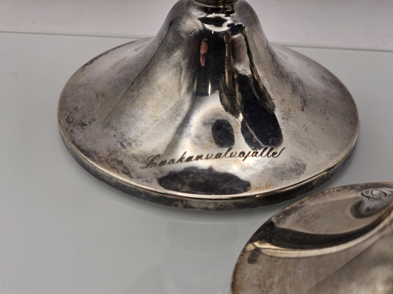 Bruttopaino 378g. Kaiverruksia. K: 8,2cm