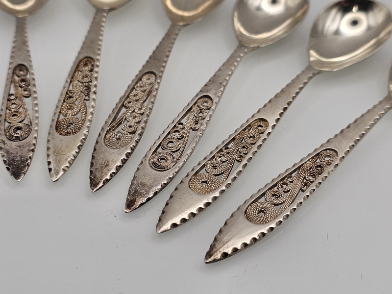 #1039 - 6kpl hopeisia lusikoita filigraanikoristeella, 800h, 65g