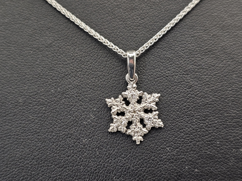 #1048 18k valkokultainen riipus timanteilla, Kari Hirvonen - "Moossina", 1,57g + 14k kultaketju 3,33g