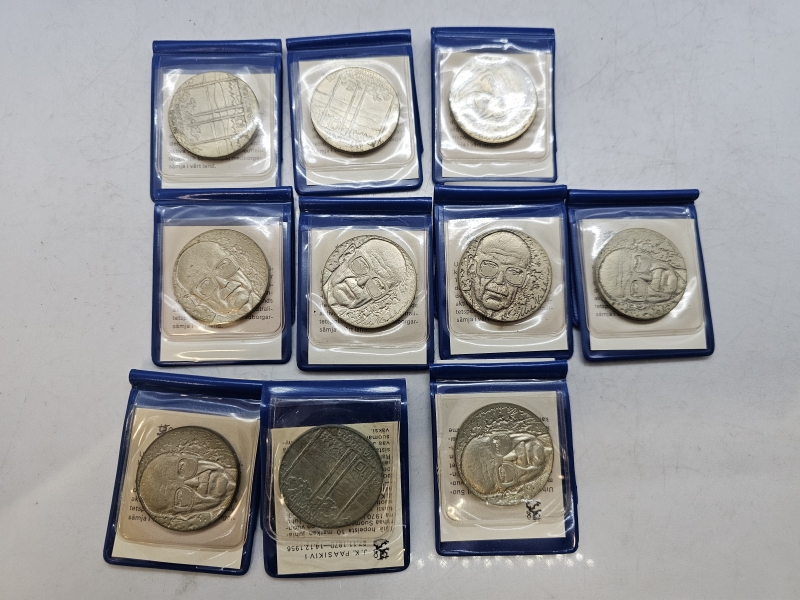 #1077 - 10kpl hopeisia UKK juhlarahoja, 500h, 240g