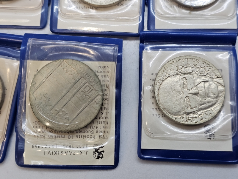 #1077 10kpl hopeisia UKK juhlarahoja, 500h, 240g