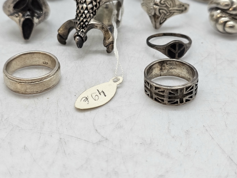 #1213 - 10kpl hopeisia sormuksia, 99g