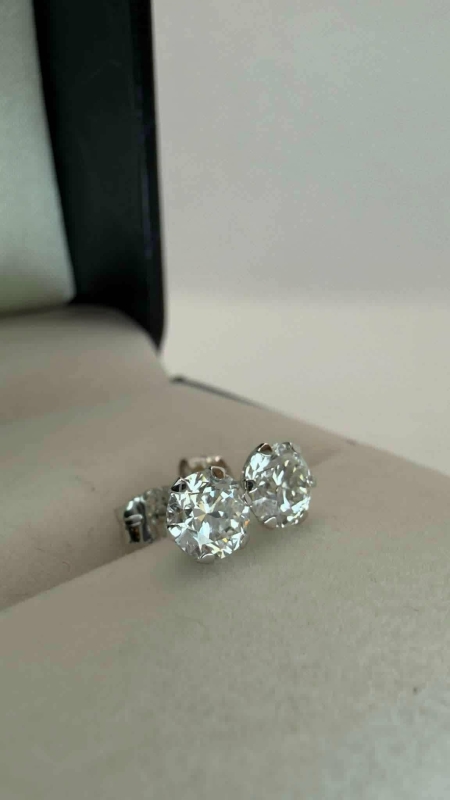 Bruttopaino 0,7g. Mukana GIA -todistukset timanteille. Laserilla merkitty.