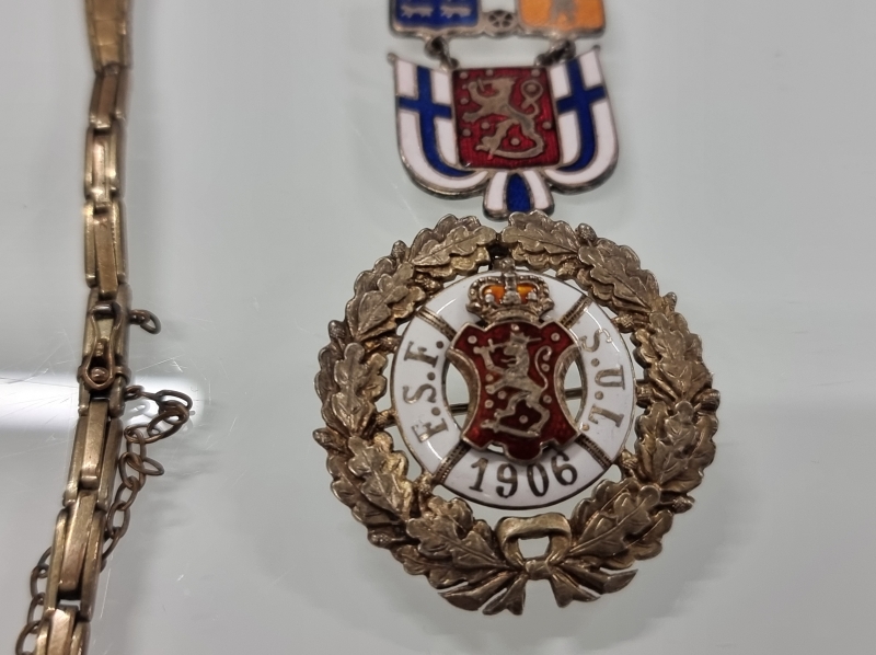 #1651 Uudenmaan rakuuna rykmentin ranneke, kellonperät ja S.U.L. hopeinen merkki