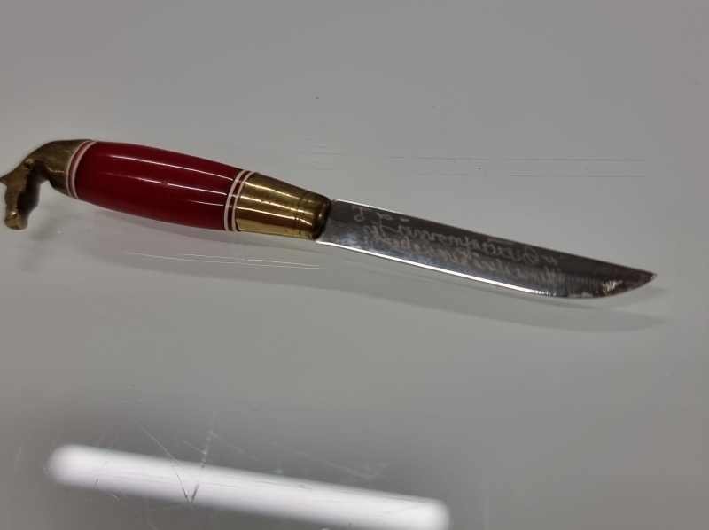 #1656 Iisakki Järvenpää kaksineuvoinen puukko Aulanko - kaiverruksella