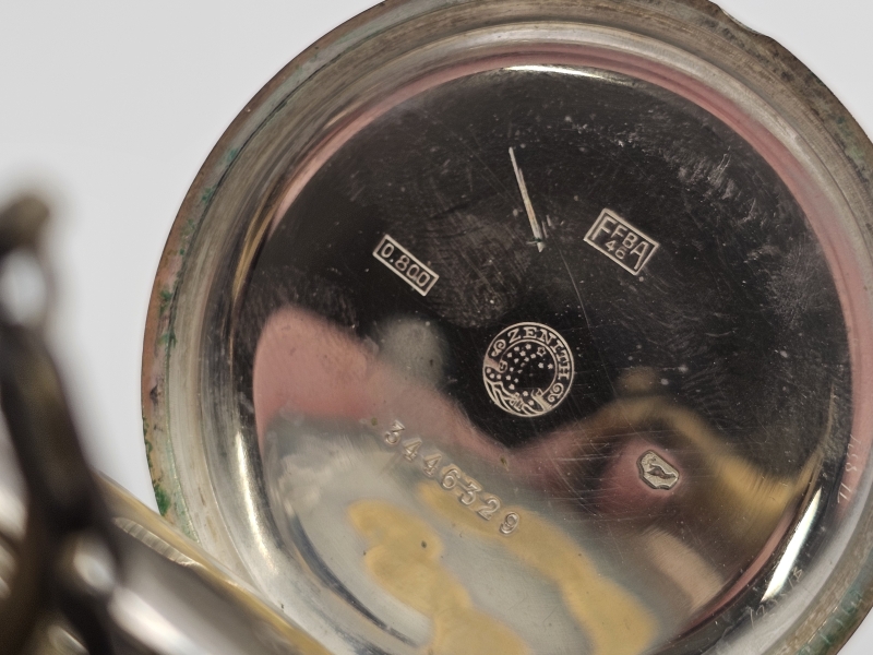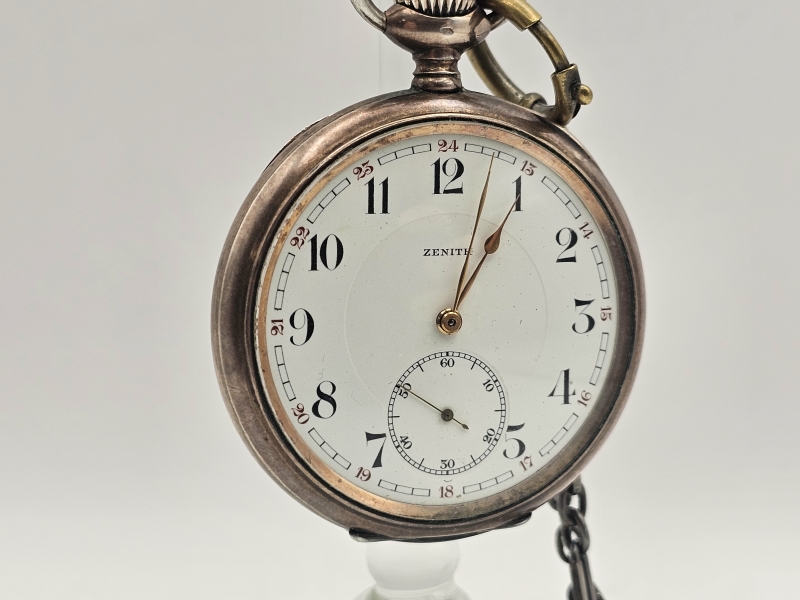#1092 Hopeinen Zenith taskukello + perät