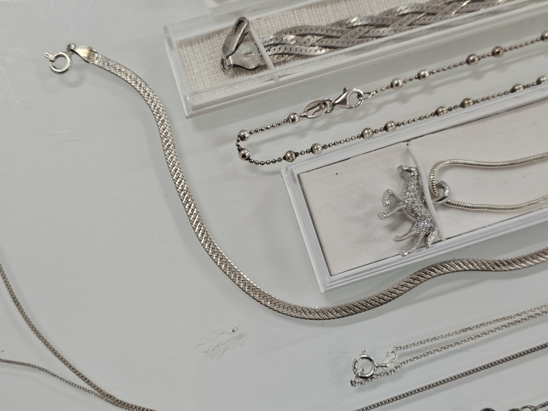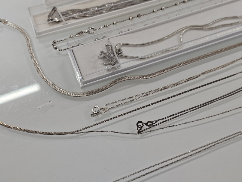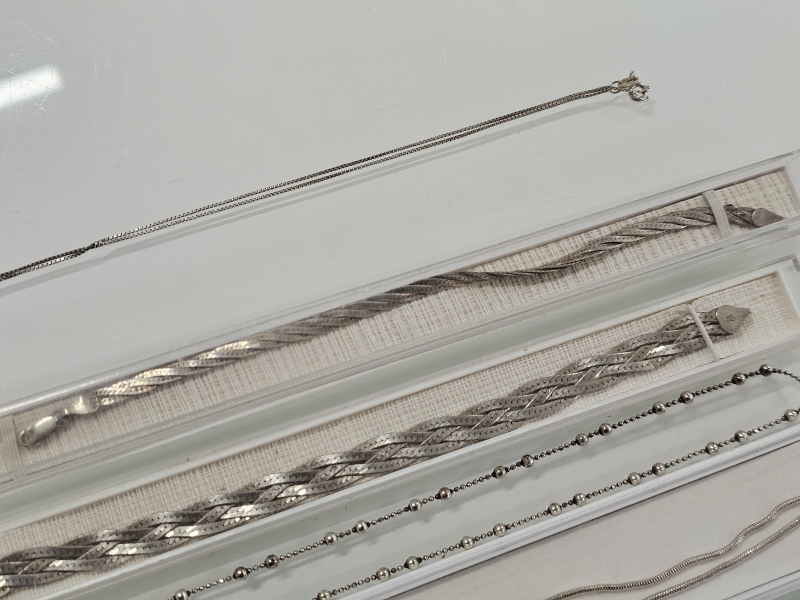 #1115 - Erä hopeisia ranne- ja kaulakoruja, 813-925h, 48g