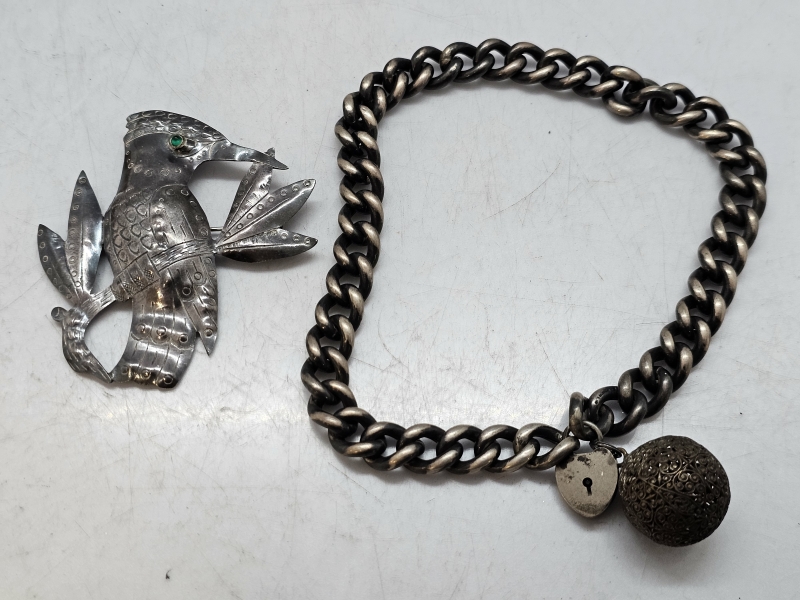 #1142 Hopeinen panssariketju + iso hopeinen rintakoru, molemmat 925h, 77g