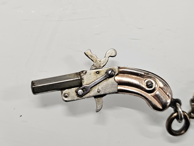 #1149 Erä tavaraa: Mm. minipistooli toimivalla mekanismilla, Coronation 1953 linkkuveitsi