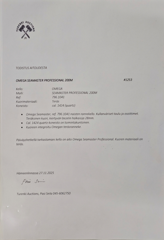 Halkaisija 28mm. Ref: 796.1041. Mukana aitoustodistus