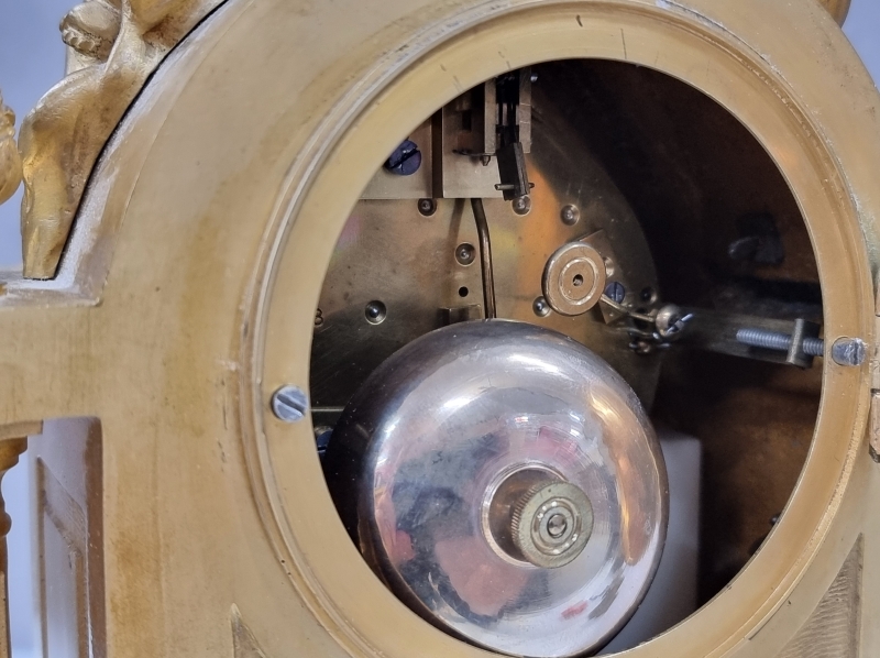 #2008 - Antiikkinen pöytäkello kivi/metallijalustalla