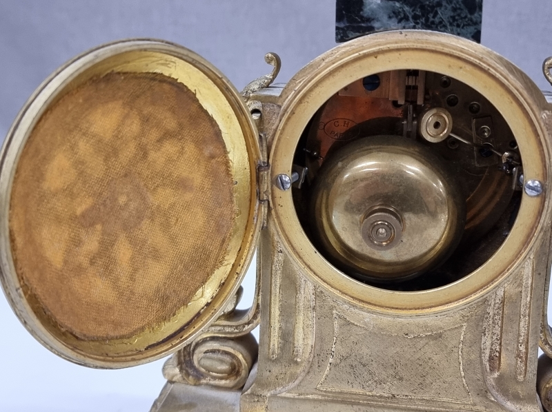 #2009 Antiikkinen pöytäkello metalli/kivijalustalla