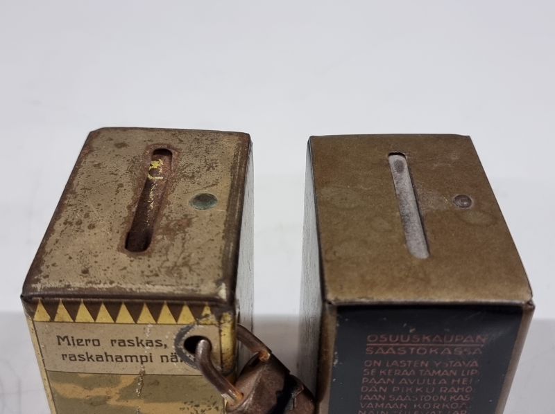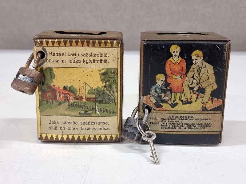 #2012 2kpl vanhoja säästölippaita valmistaja G.W. Sohlberg Ab