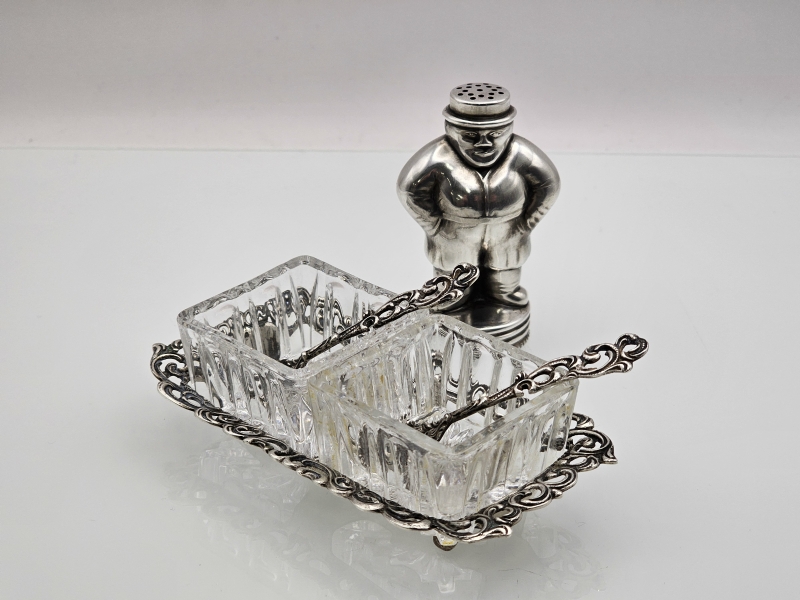 #1172 - Hopeinen mies-sirotin ja mausteikko lasi/hopea, 813-830h, 62g