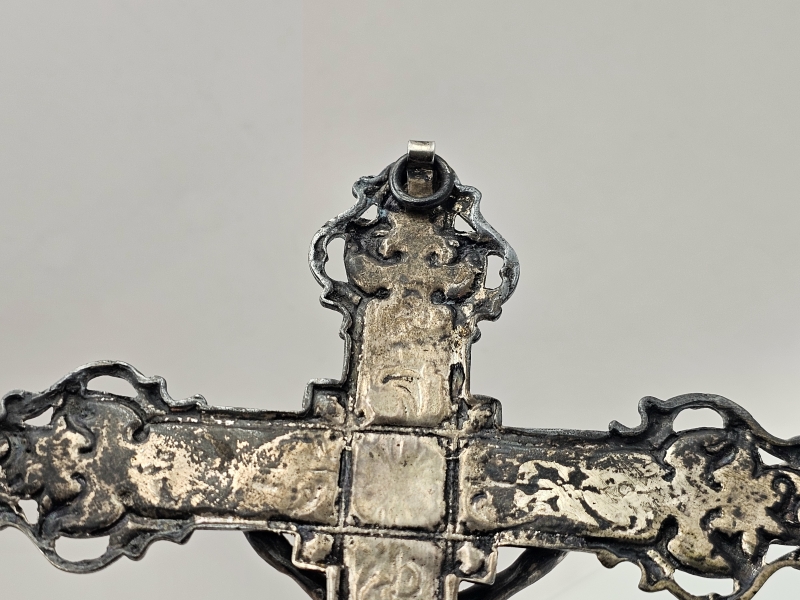 #1173 Hopeinen krusifiksi seinäripustimella, 830h, 113g