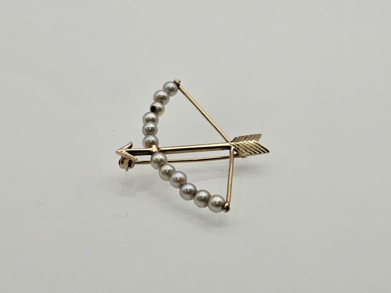 #1177 14k kultainen rintaneula helmillä, 2,95g