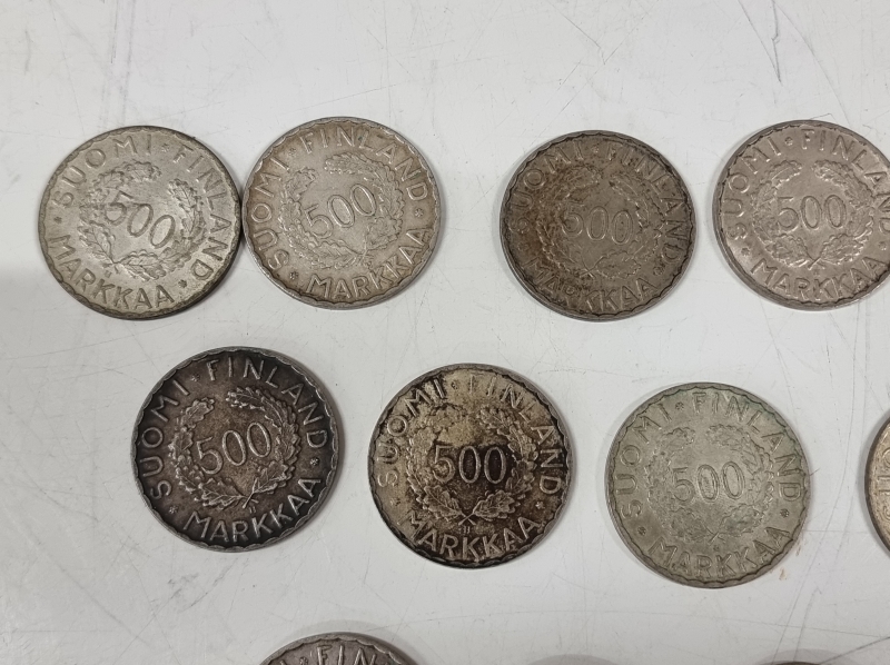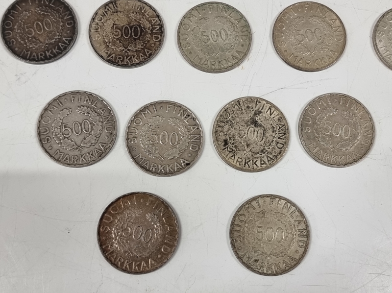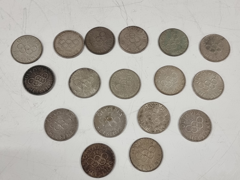 #1209 17kpl Helsingin olympialaisten hopeisia juhlarahoja v. 1952. 500h, 203g