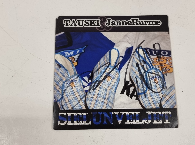 #2447 - Erä keräilytavaraa, mm. Tauski & Janne Hurme "Sielunveljet" CD-levyt nimikirjoituksilla