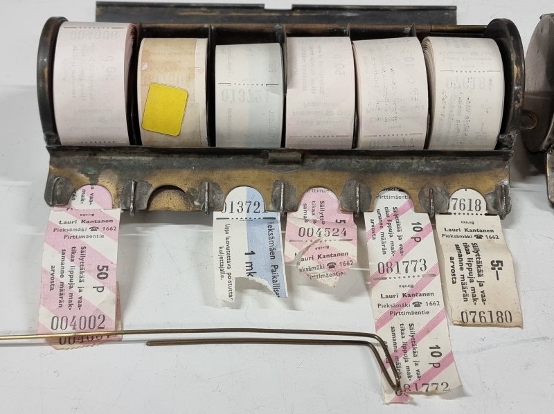 #2214 2kpl vanhoja linja-auton lipunmyyjän lippukoteloita