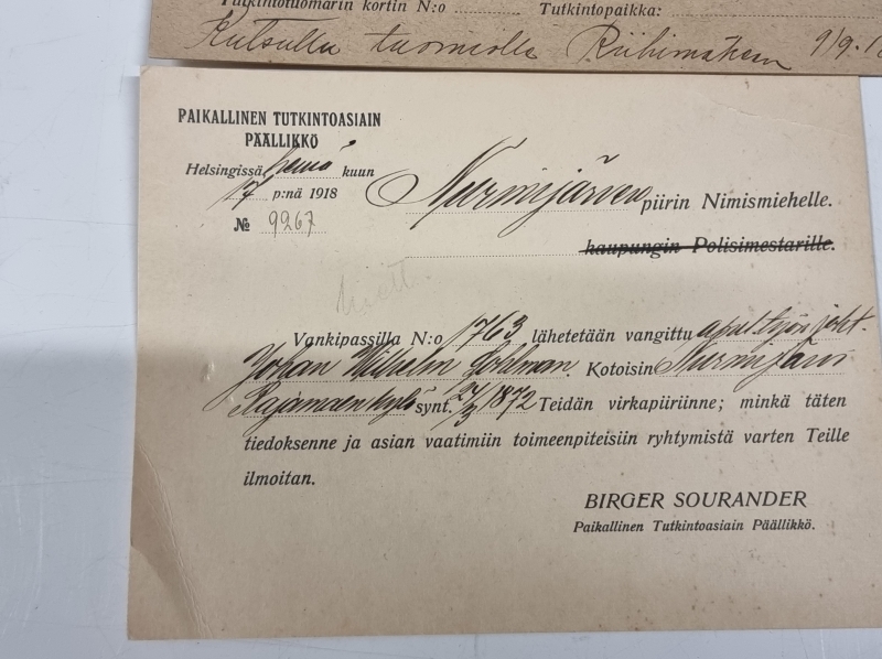 #1663 - Punakaartin esineitä: "Tulivuori"-, kahle-, työväen järjestyskaartin merkki, reliefi ym.