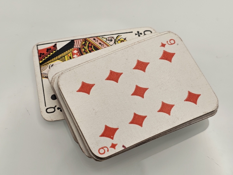 Laatikon koko 5cm x 3,5cm x 3,3cm. Paino 67g. Korttien määrää ei laskettu