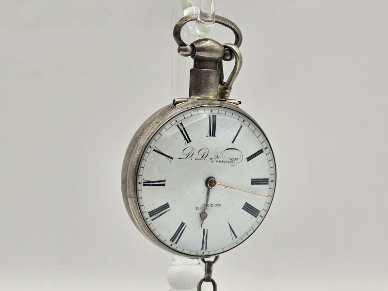 #1222 - Taskukello: Hopeinen D.D.Neveren, 1700-luvun loppu