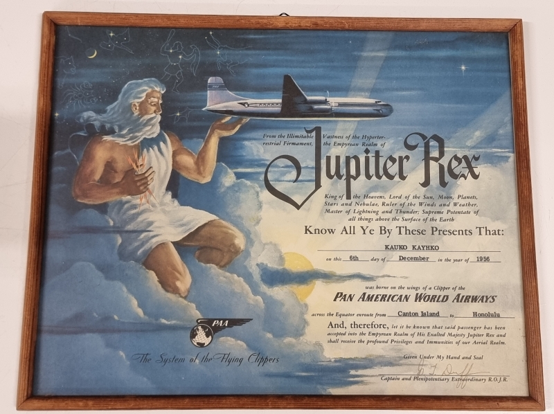 #2084 2kpl kehystettyjä Pan American Airways todistuksia lentokoneessa syntymisen johdosta.