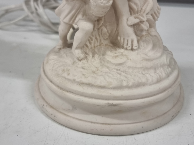 Valaisimessa jälkiä, varjostimessa vikaa, patsaassa korjaus. Korkeampi 65cm