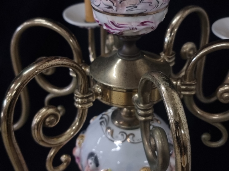 #2221 Kattovalaisin posliini/metalliosilla