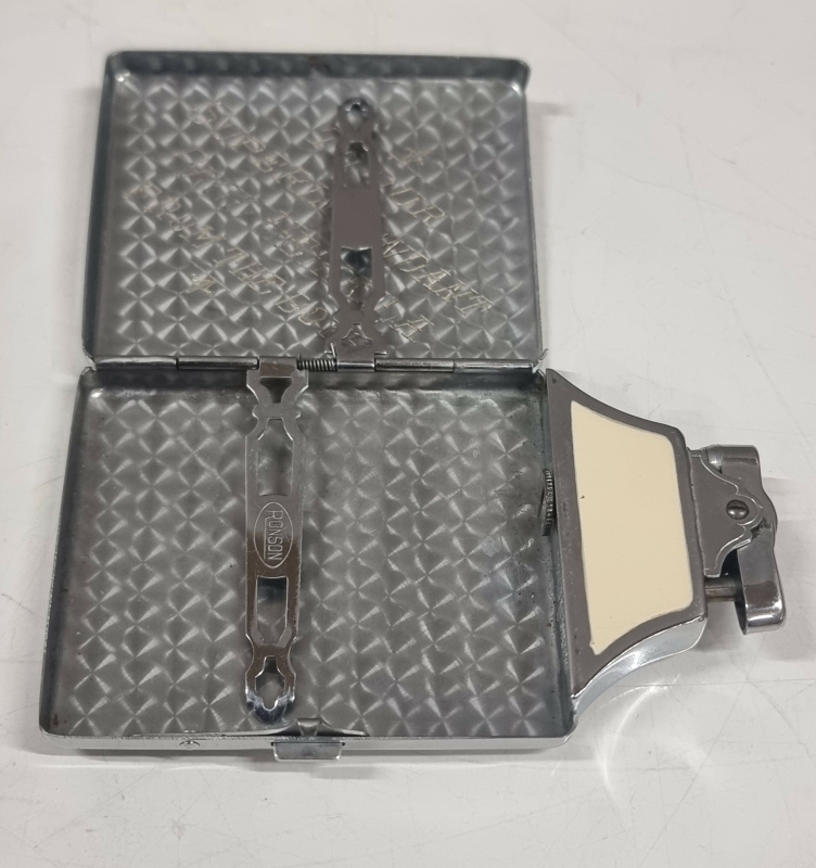 #2225 - 3kpl esineitä: Matkavalokuvakehys, Ronson tupakkarasia/sytytin + paperiveitsi