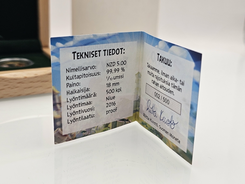 Paino 3,11g. Pitoisuus 999/1000