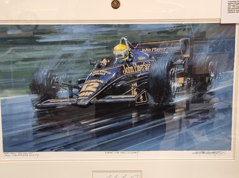 Sennan ensimmäinen voitto 1985 Portugal GP. Kehyksineen 93cm x 70cm