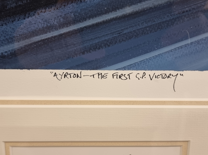 #805 Nicholas Watts signeerattu akryylimaalaus Ayrton Sennan nimikirjoituksella