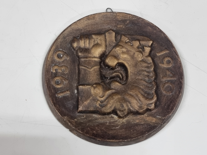 #1719 - Erä militaria -esineitä: Kypärä hupulla, Talvisodan muistoreliefi, Teknikum -pamppu ym.