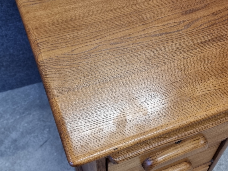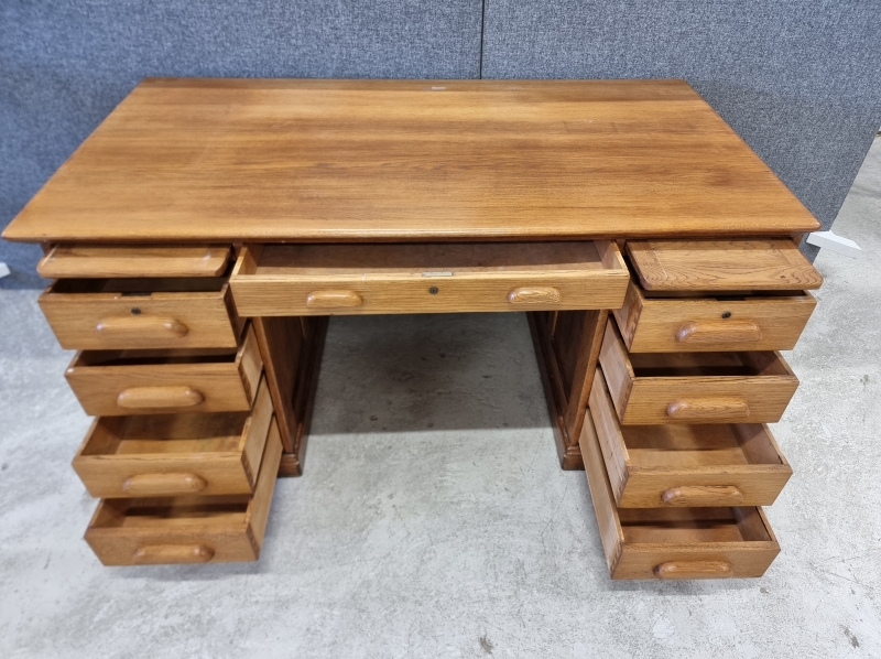 #1855 Billnäs kirjoituspöytä laatikostoilla. Ylin laatikko lukitsee alemmat.