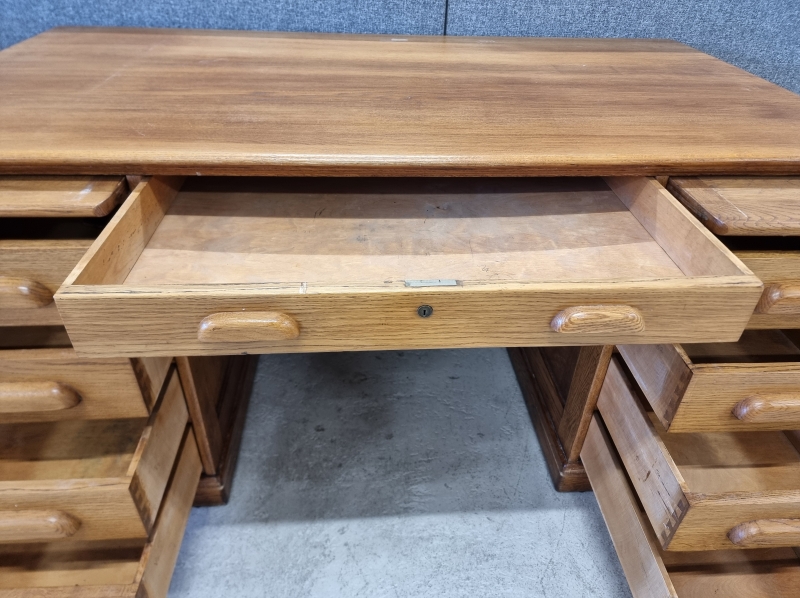 #1855 - Billnäs kirjoituspöytä laatikostoilla. Ylin laatikko lukitsee alemmat.