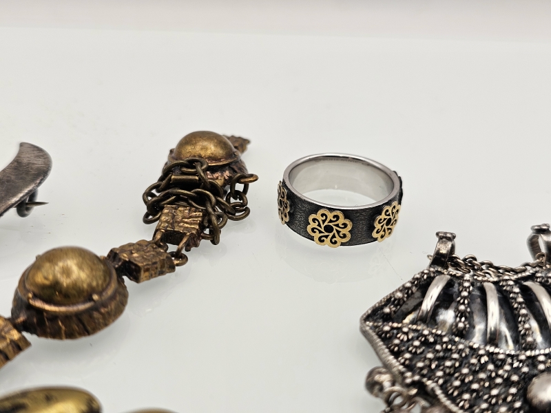 #1310 - Erä hopea- ja pronssikoruja: Mm. Bohemme -sormus, Jan E. von Krogh rintakoru