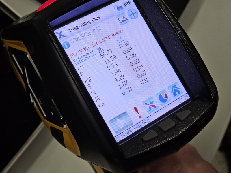 Paino 13,01g. Pitoisuus varmistettu XRF-laitteella. Korkeus lenkin kanssa 33,5mm