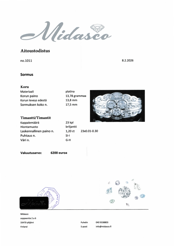 #1271 Platinasormus 23kpl timantilla (1,20ct), 13,78g
