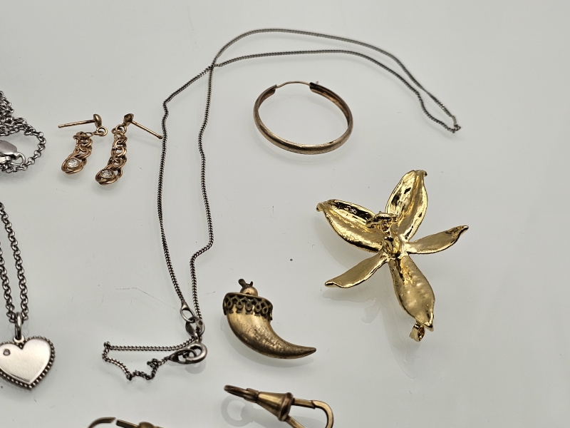 #1334 - 14k kultaiset korvakorut [1,18g] + hopeaketjut ym.