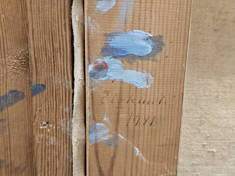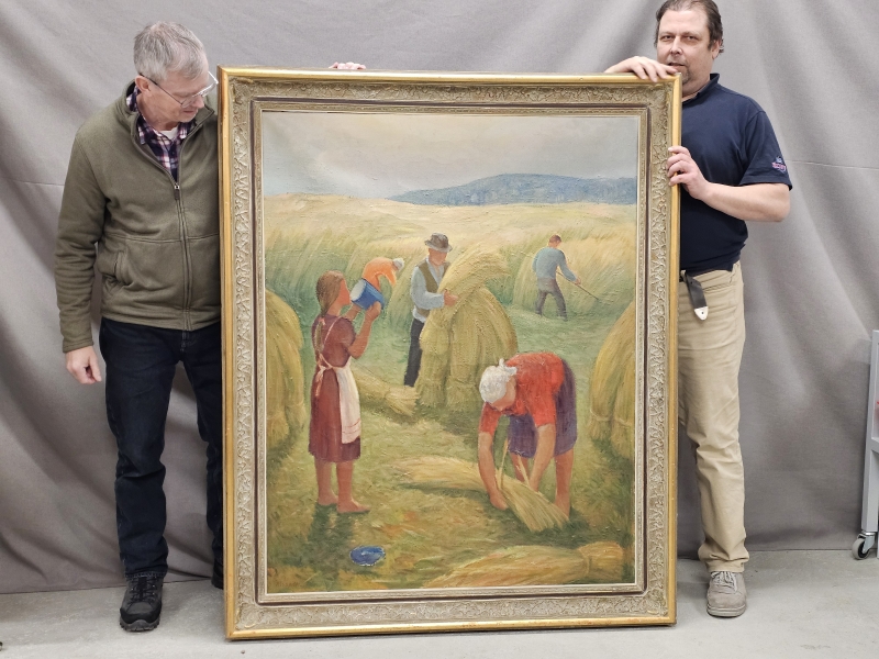 #1794 Isokokoinen öljyvärimaalaus, Kaapo Rissala [s.1900, k.1971], "Elopellolla"